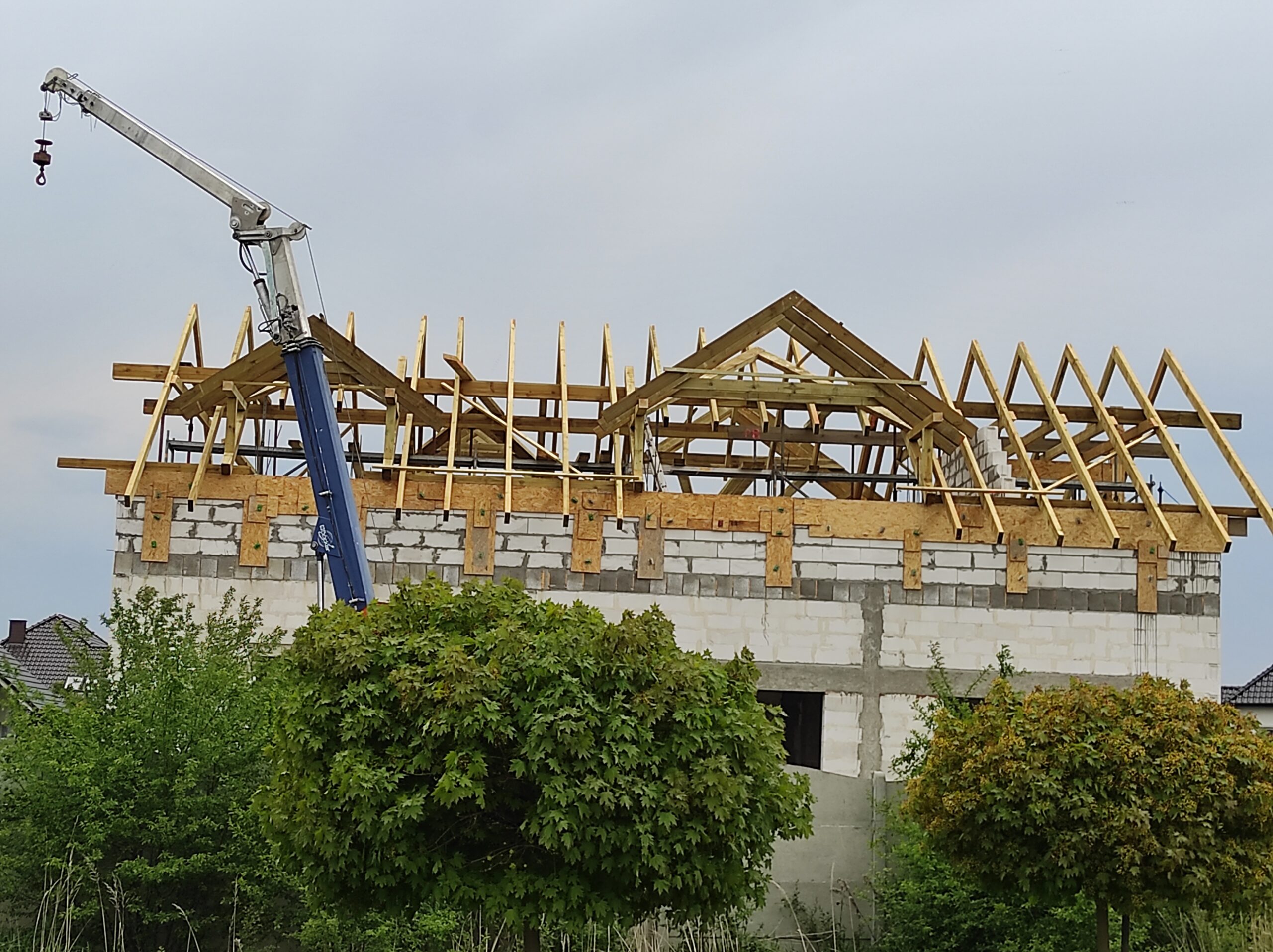 Najczęściej: montaż więźby dachowej i wiązarów, montaż konstrukcji stalowych, ustawianie prefabrykatów oraz rozładunki materiałów na budowie.